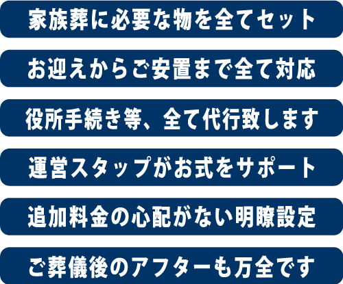 | 第三式場(席数150席) ※祭壇、遺族控室、式場控室料金含む。 火葬場に移動する為の霊柩車と バスの費用は不要です。 |